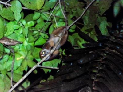 So happy to have seen one of these! A terrible picture, but wonderful to see in the wild. These nocturnal strepsirrhine primates are actually venomous and their bite can be deadly.
