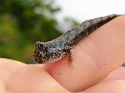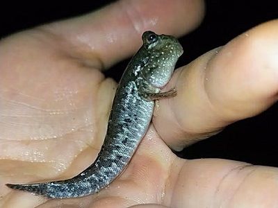 A more eel-like mudskipper species that is quite finicky about its habitat. They like very soft mud in estuaries, and can only be found on the right type of brackish mudflat. They disappear down burrows very quickly when approached. Males have a tall dorsal fin that they raise up when courting.