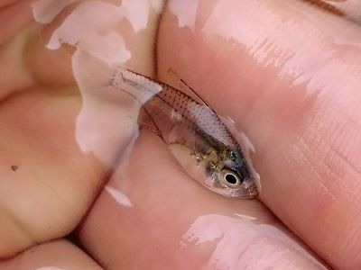 A small semi-transparent fish that lives in schools in estuaries, freshwater and saltwater. They generally congregate near cover like fallen branches or mangrove roots.