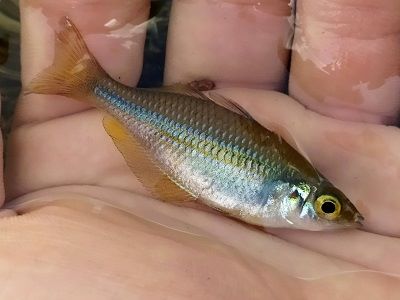 One of the more widely distributed rainbowfish species in Australia. This species is highly variable, but the splendida subspecies generally has blue scales with orange stripes. Males get long fins and can grow to up to 14cm (although usually just reach 8). They are especially colourful when spawning and courting.